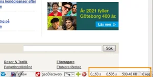 Längst ner i Firefox högra hörn gömmer sig lori (addons.mozilla.org/en-US/firefox/addon/lori-life-of-request-info/), ett plugin som ger en snabb översikt med sidans tyngd, första skickade byte, total laddnignstid och antal utestående förfrågningar för sidan du är inne på.