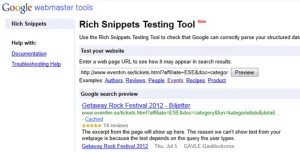 Med Structured Data Testing Tool kan du se om en sida enligt Google har tillräckligt med semantisk data för att kunna visas på ett utökat sätt i resultatsidor.