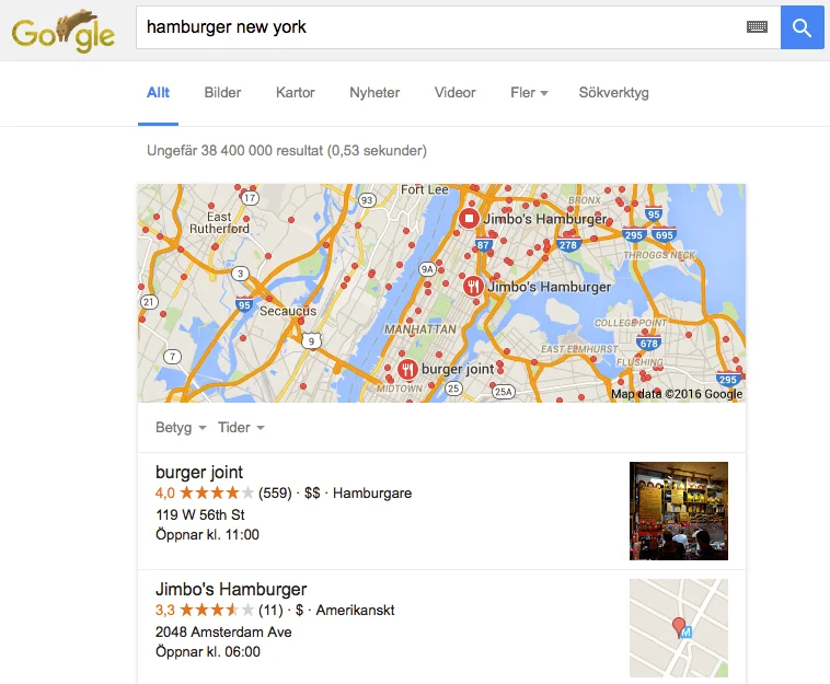 Om man nu slutar gnälla över att Google allt mindre är en sökmotor så gör de ju faktiskt jobbet lättare för den lilla företagaren att nå fram till Google. De senaste månaderna har en pilot körts för att testa Schema.org (www.seoskeptic.com/google-using-schema-org-for-local-business-information/), närmare bestämt LocalBusiness, som datakälla direkt till Googles lokala sök. Då gör man sig av med alla mellanhänder (vilket gör det svårare att utmana Googles dominans).
