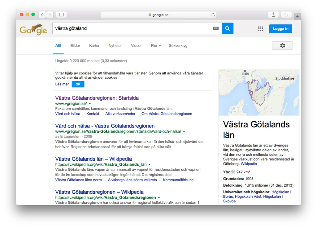 I högerkolumnen på en dator dyker ibland Knowledge Graph upp, med fakta om sökning.