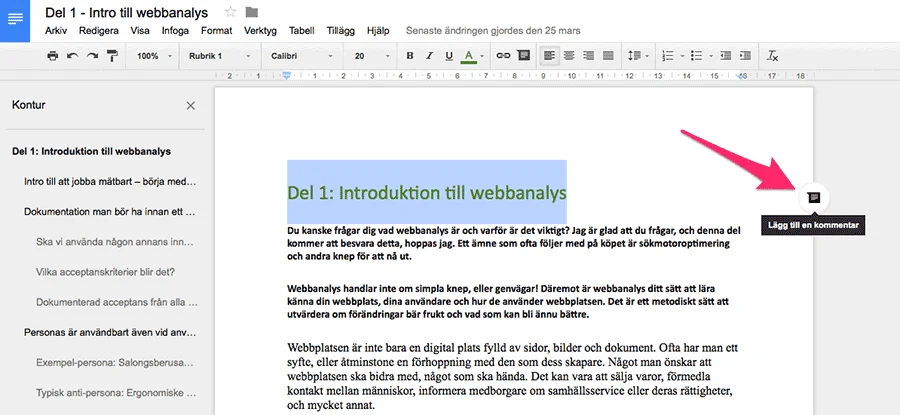 Steg ett är att markera den text man avser att kommentera.