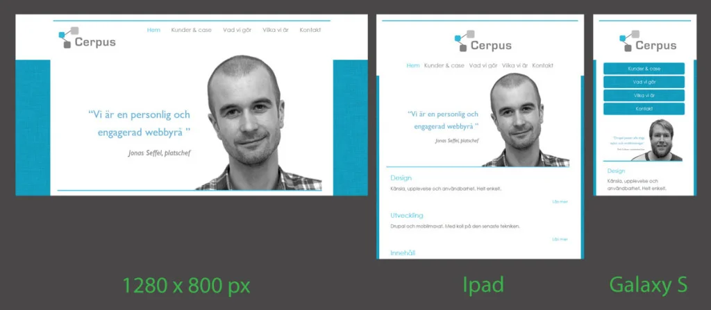 Cerpus (cerpus.se) är en webbyrå, specialiserat på Drupal, som nyligen öppnade ett svenskt kontor. Nystarten gjorde väl gott i sig men jag saknar responsive design från Valtech, NetRelations (netrelations.se) med flera.